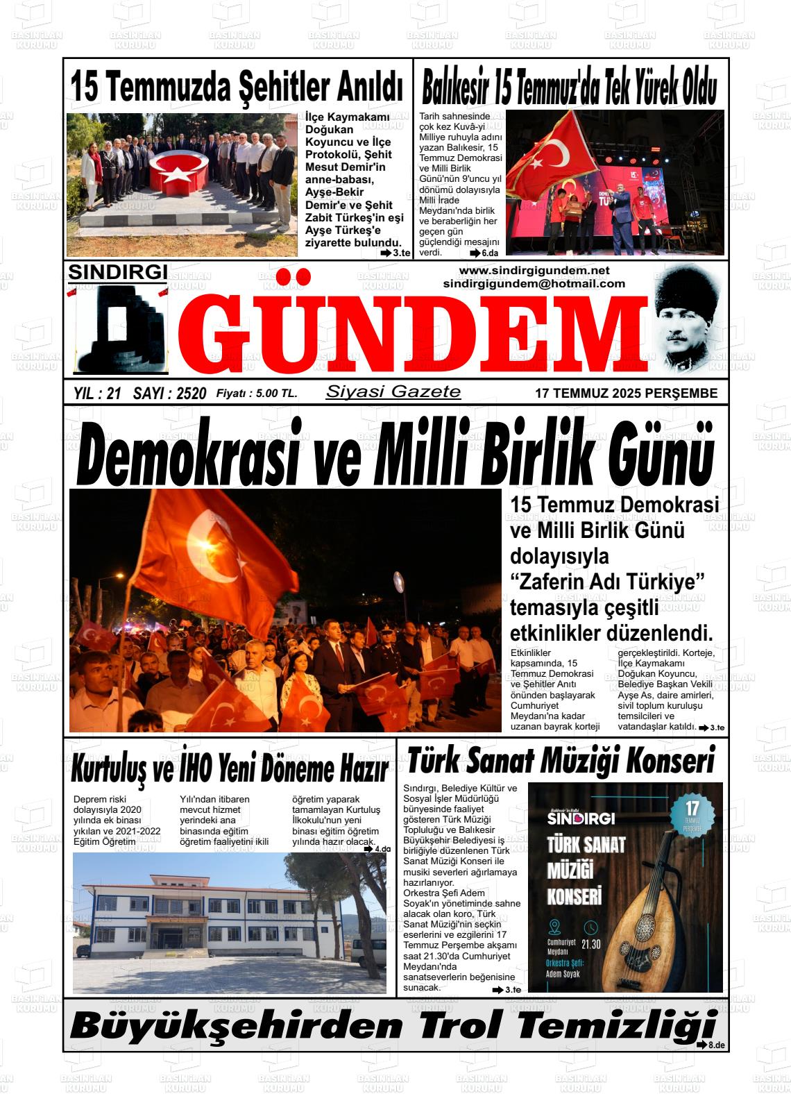 SINDIRGI GÜNDEM