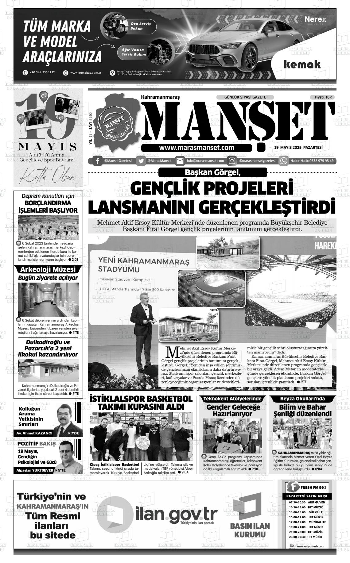Kahramanmaraş Gazete Manşetleri