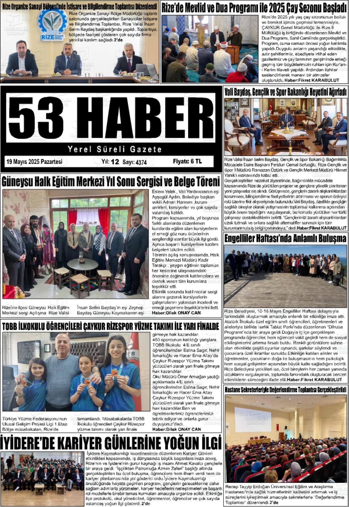 Rize Gazete Manşetleri