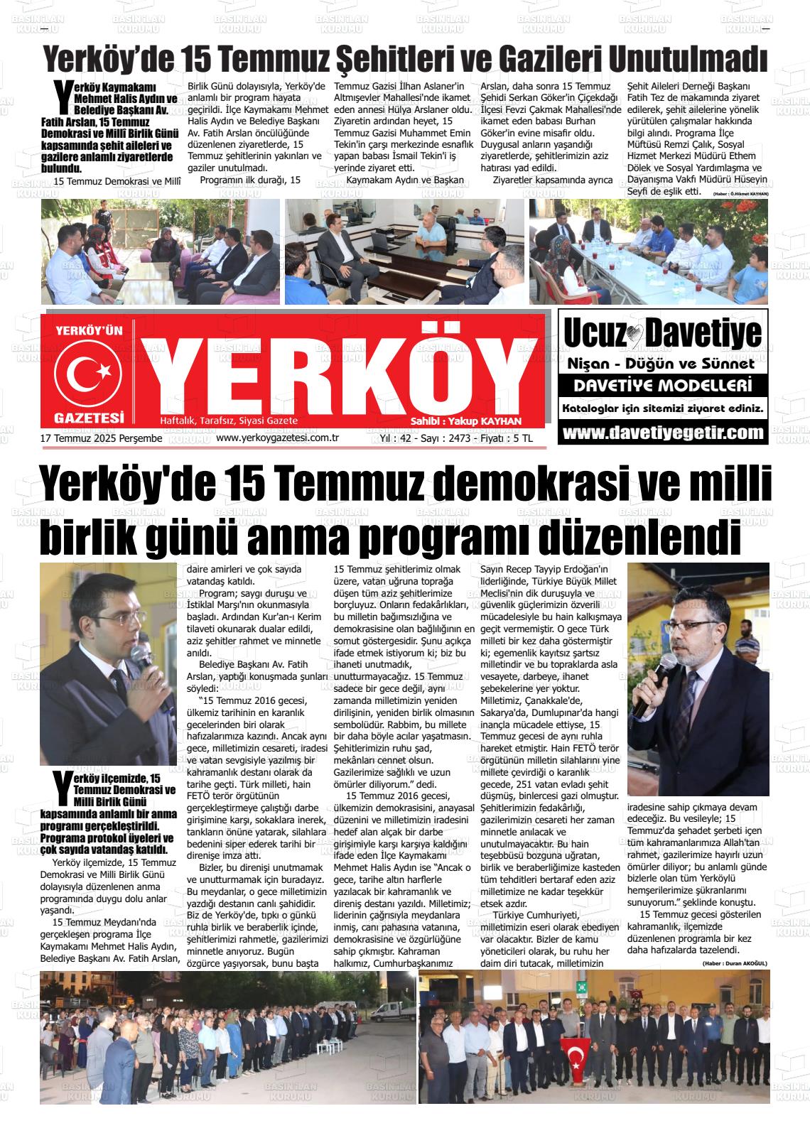 Yozgat Gazete Manşetleri