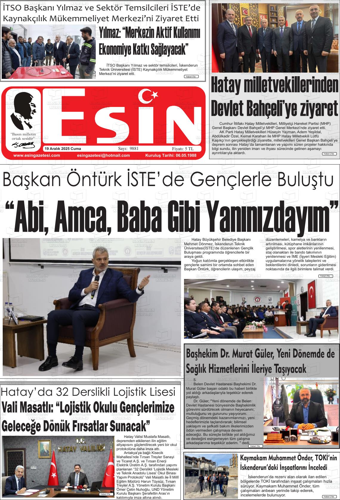 Hatay Gazete Manşetleri