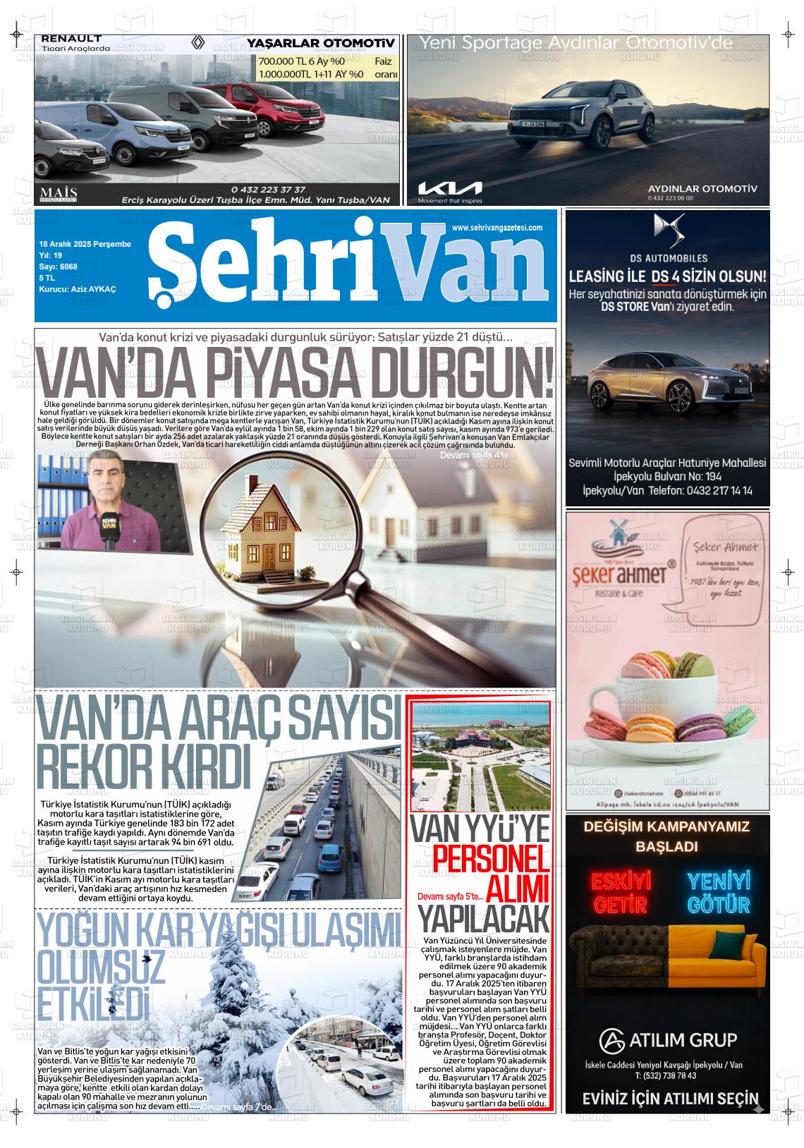 Van Gazete Manşetleri